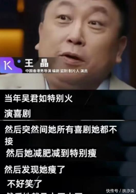 即便是她再次出演她的经典小品都已经失去了原本的笑点, 所以如此看来,她其实早已经选择了另一条路,就像香港导演王晶说的那样! 道破真相 王晶曾经在访谈中,他提及到了吴君如曾经的经历, 吴君如当年凭借着大笑肚婆的角色大红,也是在喜剧界拥有了一定地位。